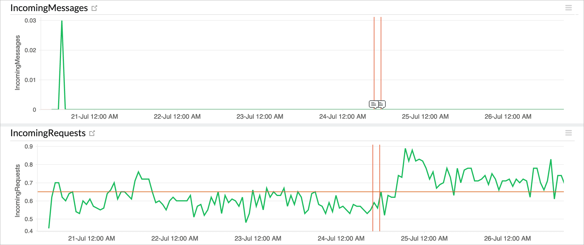 Start 30-day free trial Try now, sign up in 30 secondsGain visibility into critical usage; get the throughput stats of queues, relays, topics, event hubs, and subscriptions; and track the connectivity between producers and consumers. Monitor the exchange of messages between various devices, and configure alarms to get notified about any issues. Auto-resolve performance and availability issues with IT Automation.