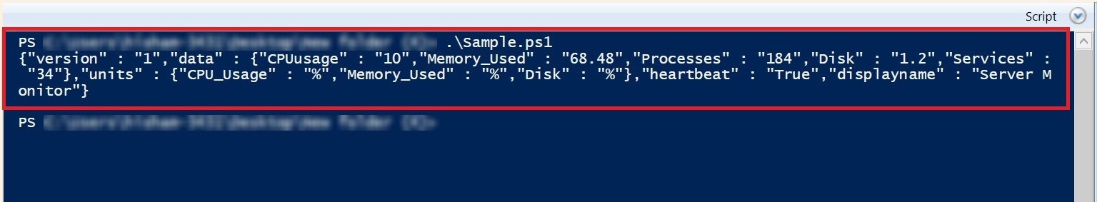 The plugin script should return a JSON object. Provide only one level of JSON data as key-value pair. The JSON data to be posted to the Site24x7 server should be in the following format: